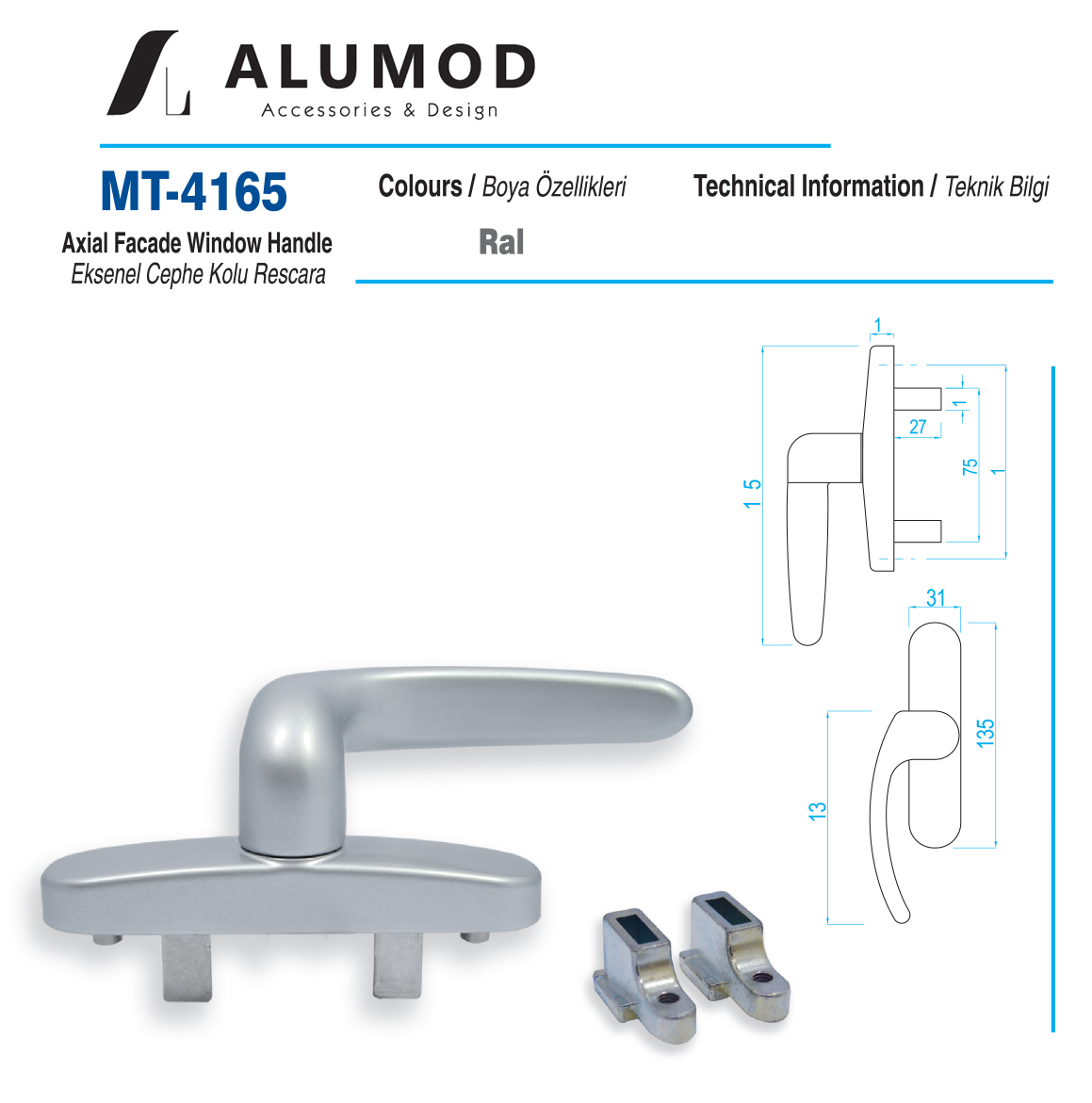 Yüzey Renk Seçenekleri: Mat Eloksal, Beyaz, Pres.