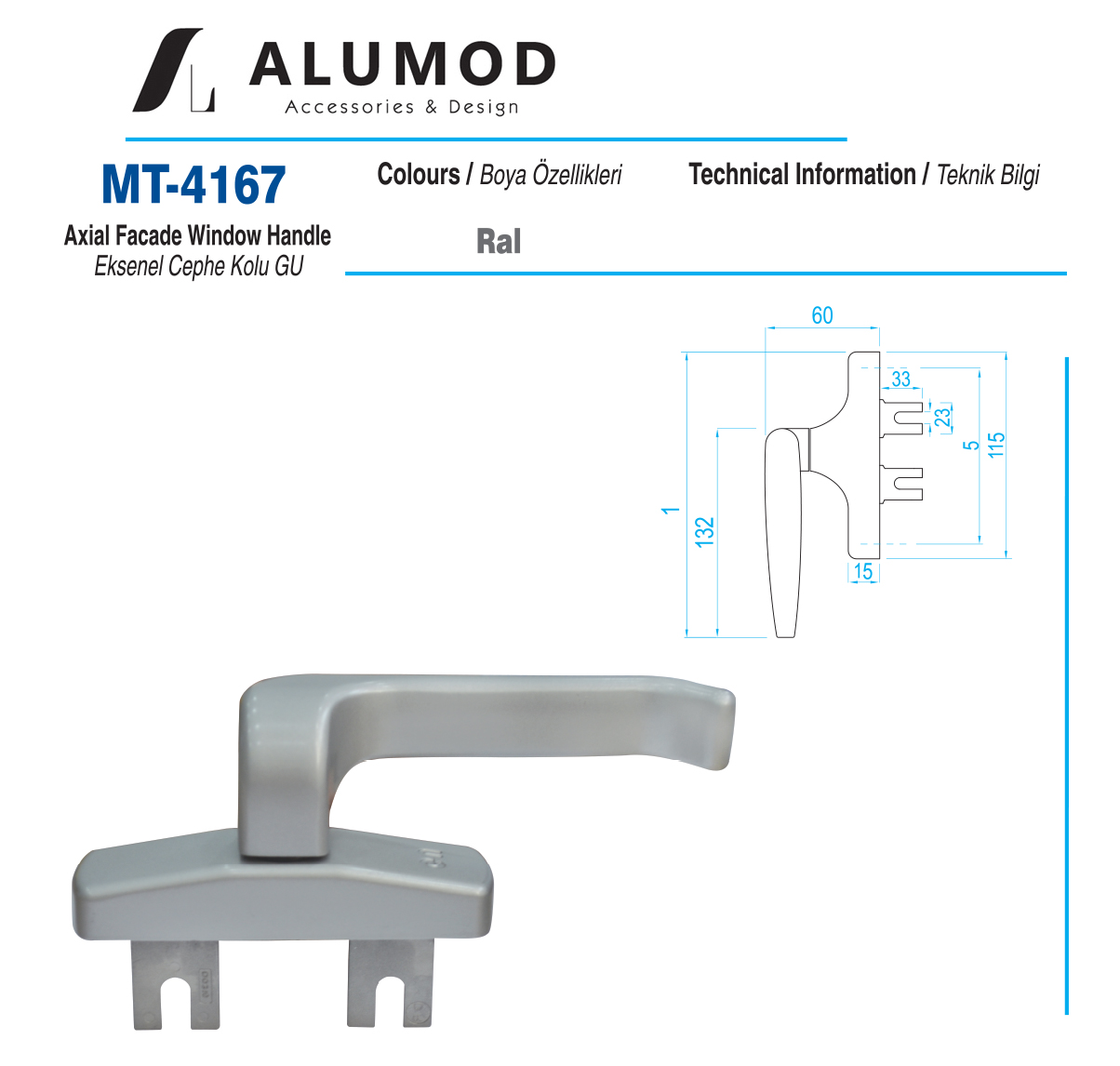 Yüzey Renk Seçenekleri: Mat Eloksal, Beyaz, Pres.